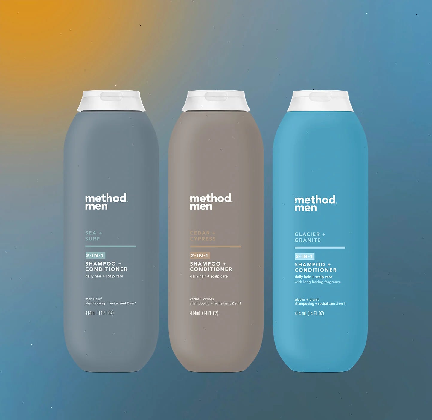 sea + surf fragrance has crisp nautical notes and smells like a seaside adventure, cedar + cypress fragrance has woody + wild notes and smells like the great outdoors, and glacier + granite has a bright, brisk, long lasting scent will turn your shower into an artic exploration.