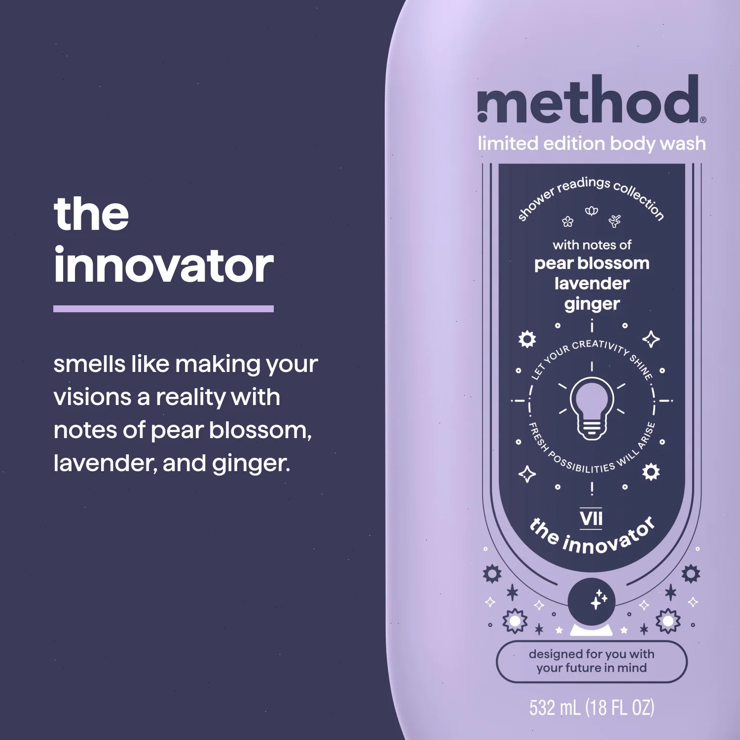 are you ready to hear your fortune? step into your shower and feel enveloped by enlightened, sweet and spicy notes of pear blossom, lavender, and ginger. our intuition says a divine shower is surely in your future.
